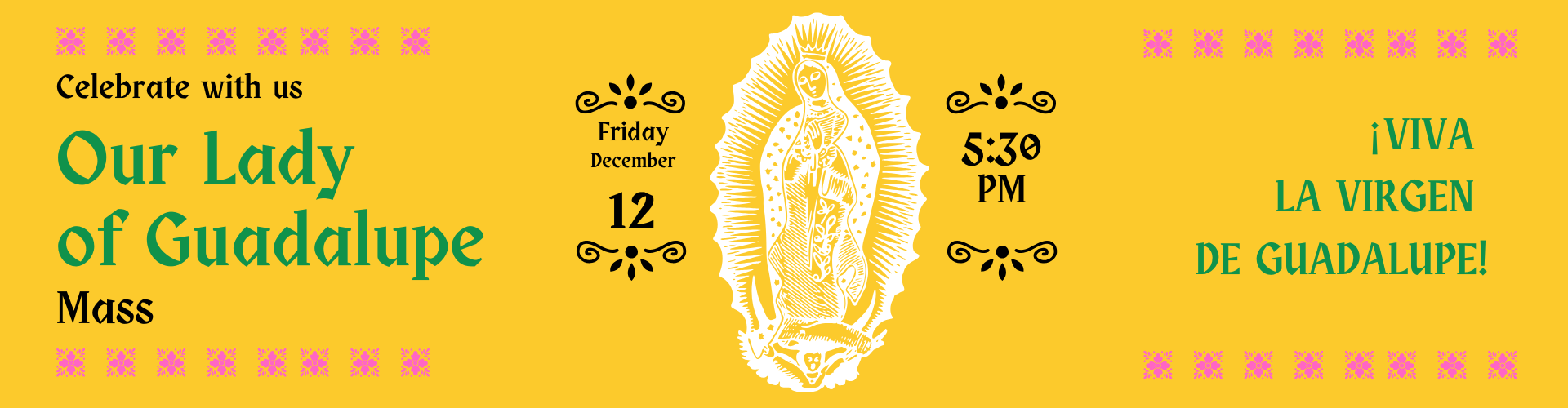 - Dec 12: Mass, 5:30 PM – Feast of Our Lady of Guadalupe
