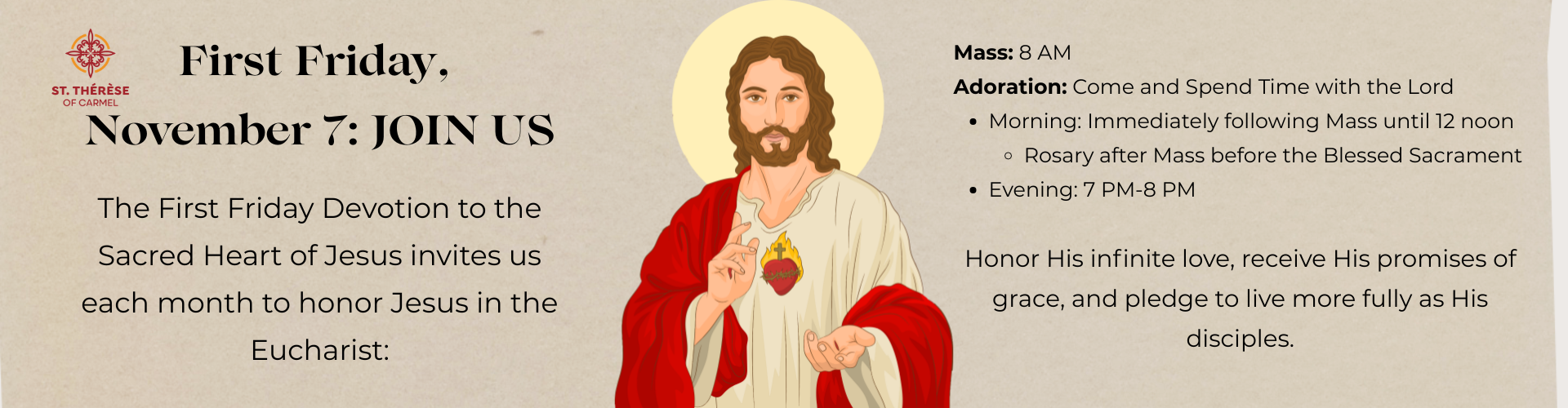 - Nov 7: First Friday – Sacred Heart of Jesus