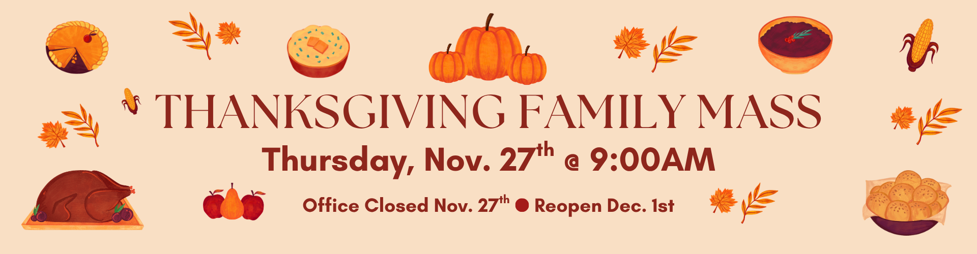 • Dec 12: Mass, 5:30 PM – Feast of Our Lady of Guadalupe