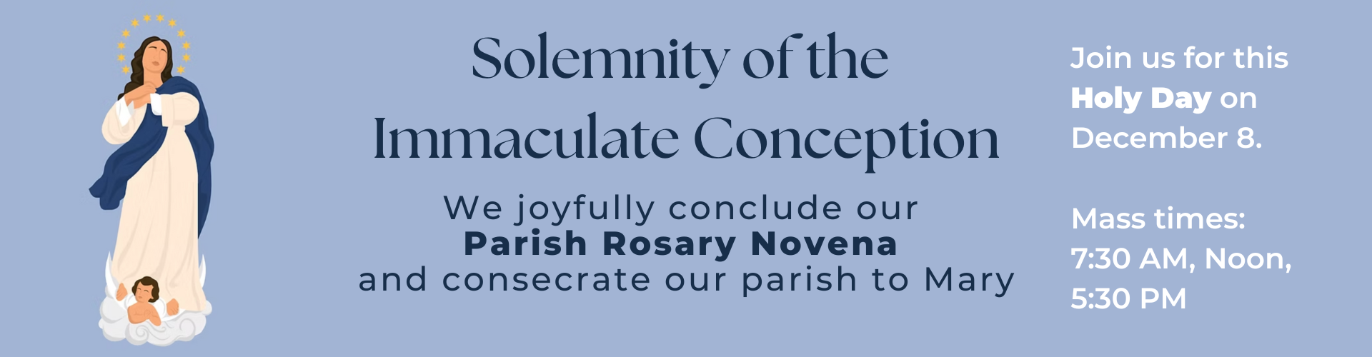 - Dec 12: Mass, 5:30 PM – Feast of Our Lady of Guadalupe