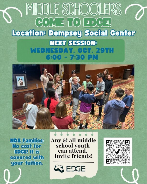 EDGE is a Catholic Middle School Youth Group experience created for early adolescents in grades 7 and 8.
