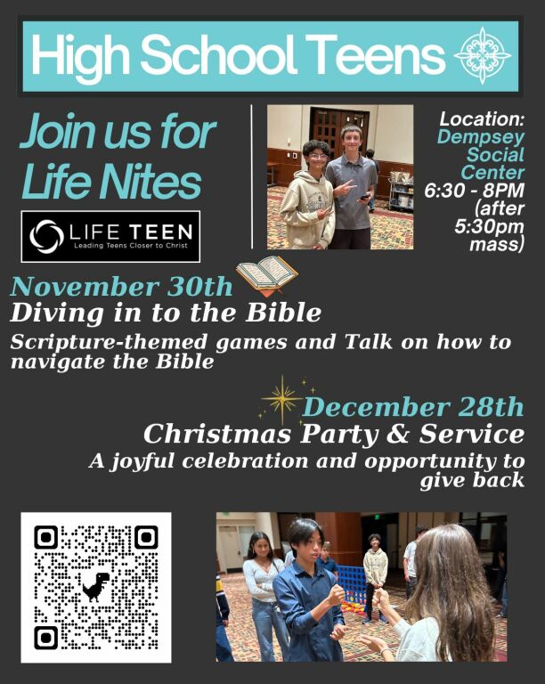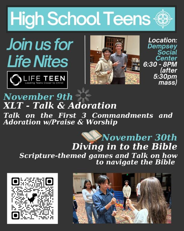 Join us on select Sundays after the 5:30 PM Mass in the Dempsey Social Center.