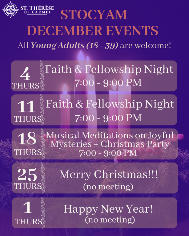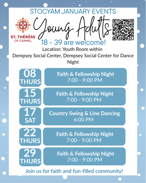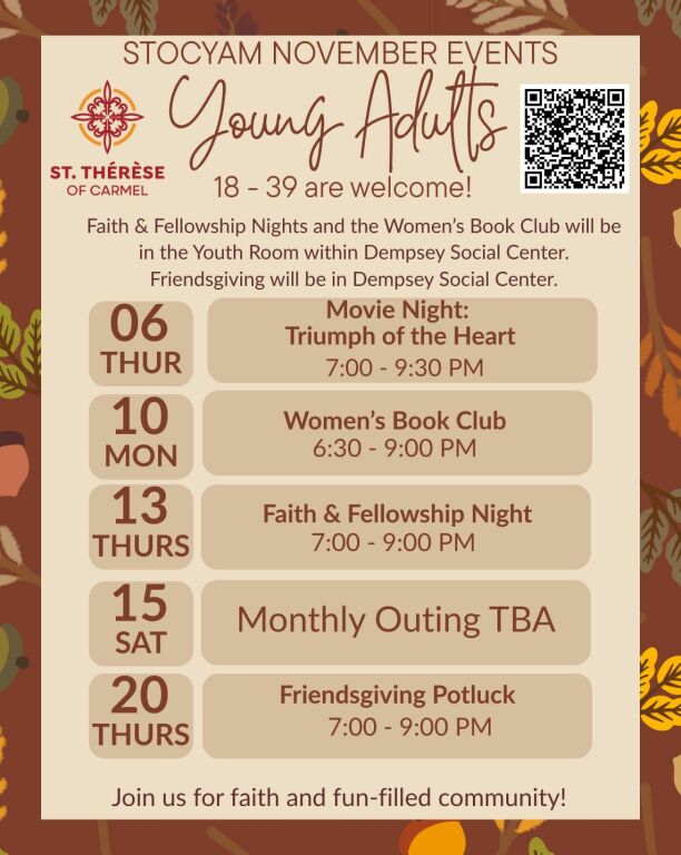 Join our Young Adults to grow in faith and friendship with the Lord and each other. Hope to see you at our next event!